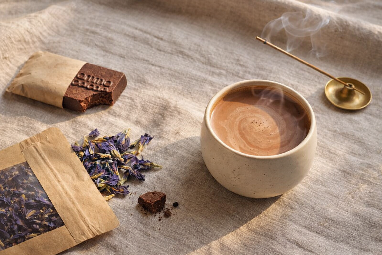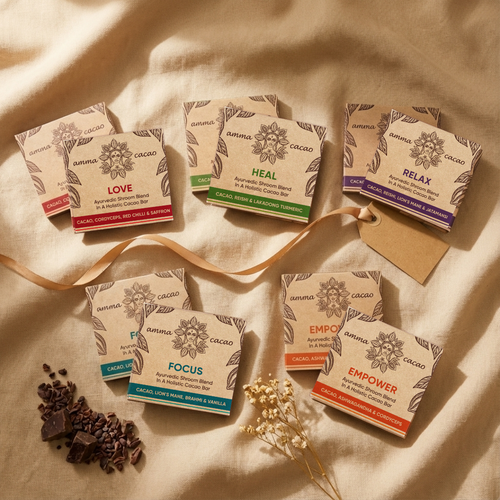 Rijk aan magnesium, theobromine en natuurlijke stoffen die rust, focus en verbinding ondersteunen.